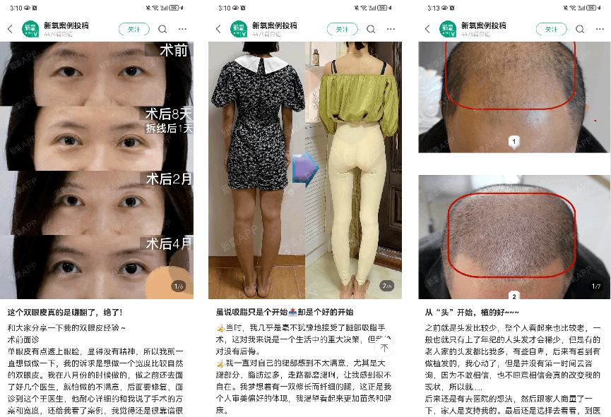 新氧APP通过构建社区的方式,鼓励医美用户发表自己的“变美日记”。分享自己手术前后变美的点点滴滴,让了解观望的用户看到效果,觉得医美是一件稀疏平常的事情。