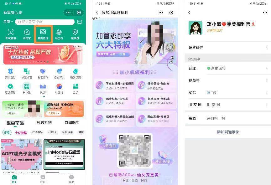 新氧在小程序【新氧安心美】中同样设置了私域引流的触点。