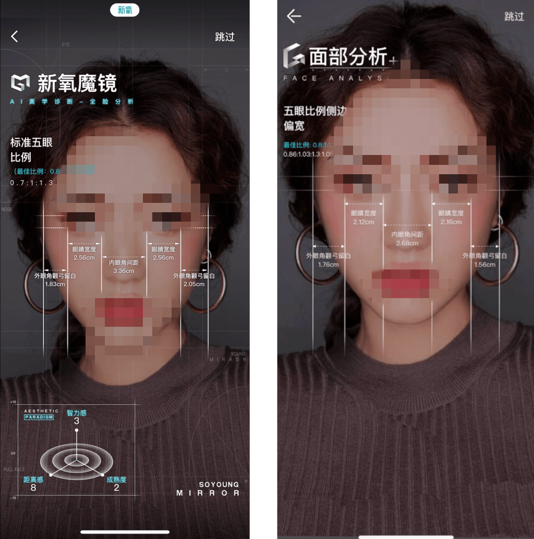 新氧魔镜由一款新氧AI实验室研发的效果模拟辅助系统。用户可以拍照上传,查看自己的面部分析情况。