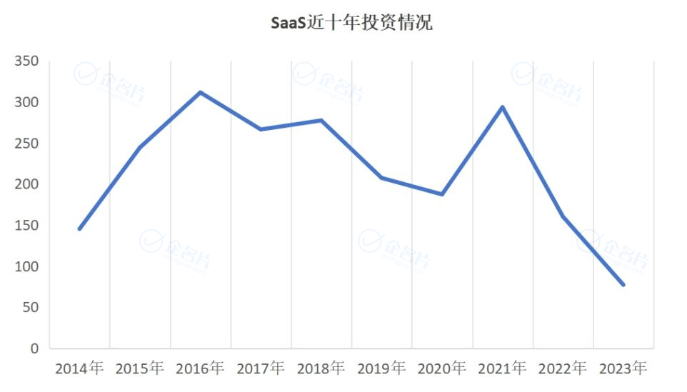 2023年,募资困难,整个一级投融资市场热情冷却。大环境下,SaaS遇冷,融资事件数达到历史低值。