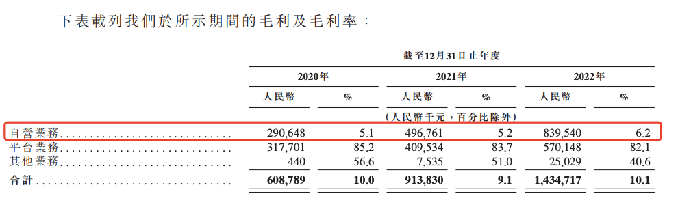 但是正如同大多数B2B电商一样,做自营业务量很大,但本身的利润却不高,2020-2022年,公司自营业务的毛利率分别为5.1%、5.2%以及6.2%。