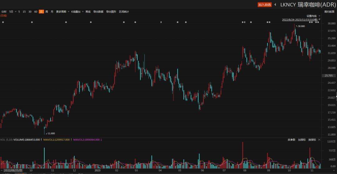 近一年瑞幸咖啡美股股价走势图