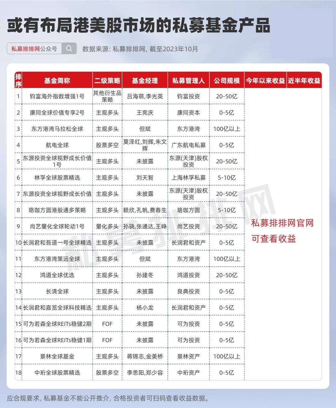 除了钧富投资外,百亿主观私募东方港湾旗下的产品也在这18只出海产品当中,如“东方港湾马拉松全球”、“东方港湾策远全球”今年以来收益分别为***%、***%。