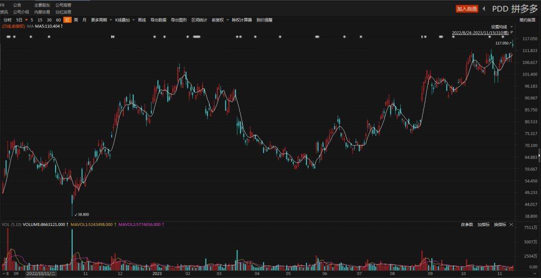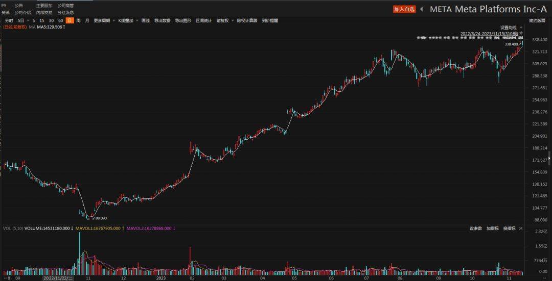 景林资产的前三大重仓股股价均创下近一年新高,截至11月15日收盘,拼多多、META和微软依次收报114.42美元、332.71美元和369.67美元,三季度末以来分别增长了16.67%、10.83%和17.31%。