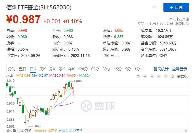中证信创指数的挂钩产品——信创ETF基金(562030)紧随指数走势,自10月12日上市以来,先是持续深度调整,后大幅反弹,走出深V态势。截至11月16日,信创ETF基金(562030)上市以来日均成交额为1870万元,场内交投活跃,深受投资者关注。