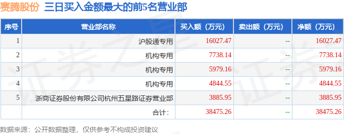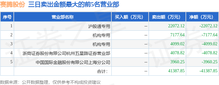 沪深交易所2023年11月17日公布的交易公开信息显示,赛腾股份(603283)因非ST、*ST和S证券连续三个交易日内收盘价格涨幅偏离值累计达到20%的证券登上龙虎榜。此次是近5个交易日内第1次上榜。