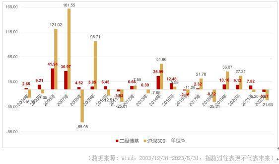 自2004年以来的19个完整年度中,沪深300指数有10年都是负收益,而二级债基指数仅4年收益为负。特别是在2008、2011、2018等沪深300跌幅超20%的年份中,二级债基展现出了很好的“抗跌”效果,堪称“避风港”。