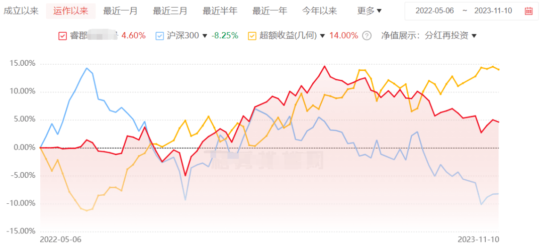 然而,旗下代表产品成立于2022年6月,截至今年11月10日,基金累计收益为-15.37%,比同期沪深300指数好一点点。