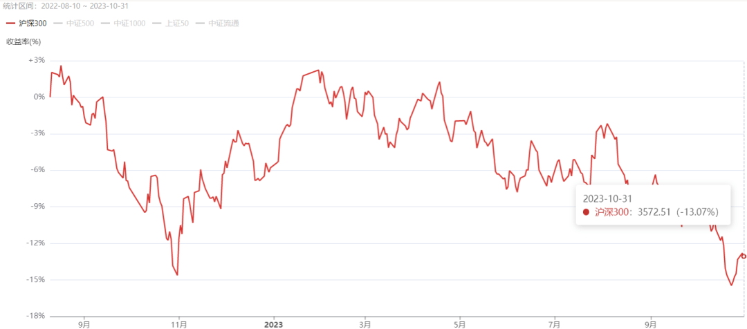 也就是说自基金2022年8月10日成立以来,截至10月底,基金累计亏损14%+,和同期沪深300指数的跌幅差不多。