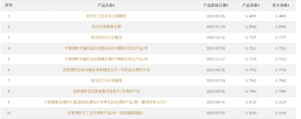 其中一只为某银行理财旗下的阳光红卫生安全主题精选理财产品(下称“阳光红卫生安全主题精选”),另一只为阳光红新能源主题理财产品(下图)。