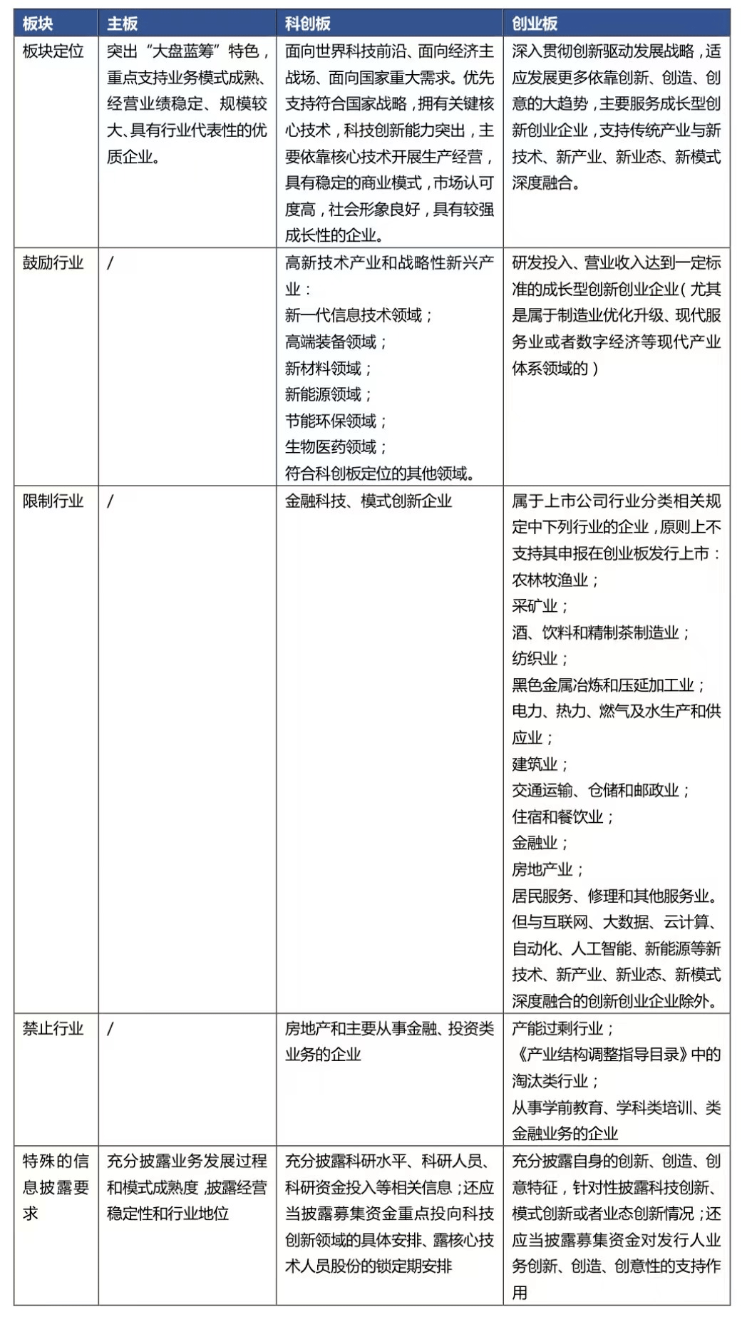 值得注意的是,《首发办法(意见稿)》仅规定“发行人生产经营符合法律、行政法规的规定,符合国家产业政策”,并未出现网传的“禁止类”“限制类”“允许类”以及“支持类”主板行业要求。我们理解,具体行业要求或待新规正式出台后,由证券监管部门出台相关文件予以明确。