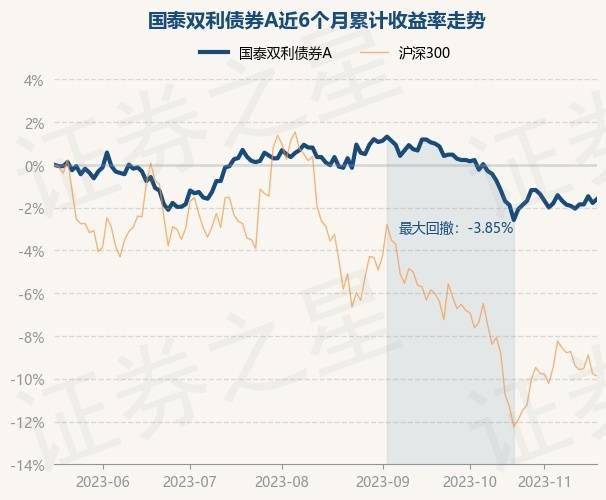 证券之星消息,11月17日,国泰双利债券A最新单位净值为1.543元,累计净值为1.963元,较前一交易日上涨0.19%。历史数据显示该基金近1个月下跌0.9%,近3个月下跌1.97%,近6个月下跌1.59%,近1年上涨0.4%。该基金近6个月的累计收益率走势如下图: