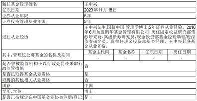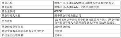 鹏华中债1-3年国开行债券指数证券投资基金基金经理变更公告