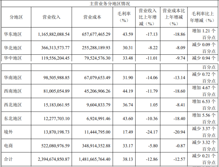 华东地区是的“娘家”,这里既是的发源地,也是企业营收的主要来源地。2022年,仅华东地区就为贡献了48%的营收,达11.65亿元。