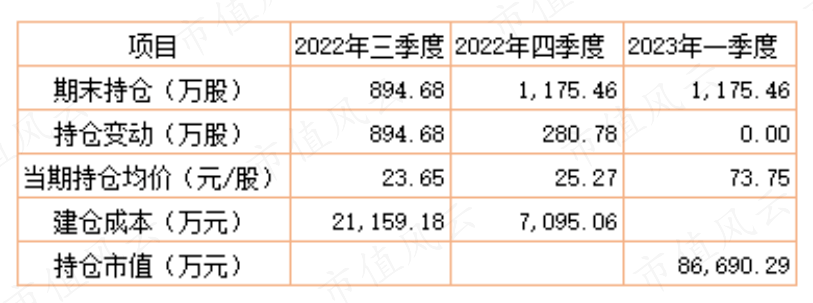 根据测算,呈瑞65号建仓1175万股的总成本约2.8亿元。而截止5月18日收盘价73.75元/股测算,持仓市值高达8.67亿元, 浮盈超过5.8亿元。
