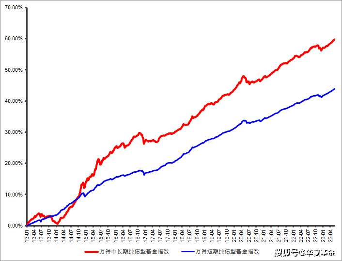 通常情况下,只要债券没有兑付困难,持有到期就不会有损失,长期看,票息收入就是一条以一定斜率向上的直线。基于此,尽管债券的资本利得可能会上下波动,但票息收入细水长流,从中长期纯债型基金指数和短期纯债型基金指数来看,尽管短期夹杂小幅波动,但长期来看长期确定性依然较高。