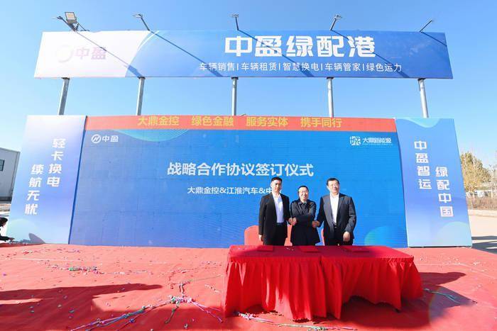 现场,山东中盈数字能源科技有限公司、江淮汽车股份有限公司、大鼎金控(山东)有限公司进行战略签约。三方将共同开拓新能源换电轻卡市场,在车辆推广、换电站建设、电池银行、金融服务等方面全面合作,共同打造轻卡换电生态。