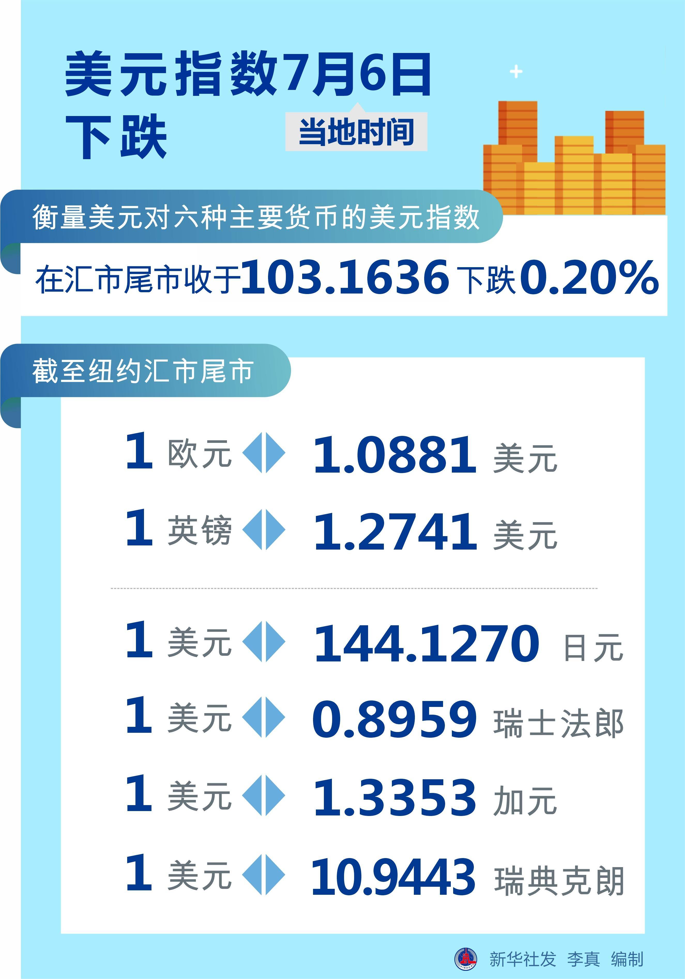 原标题:(图表)[财经·行情]美元指数7月6日下跌