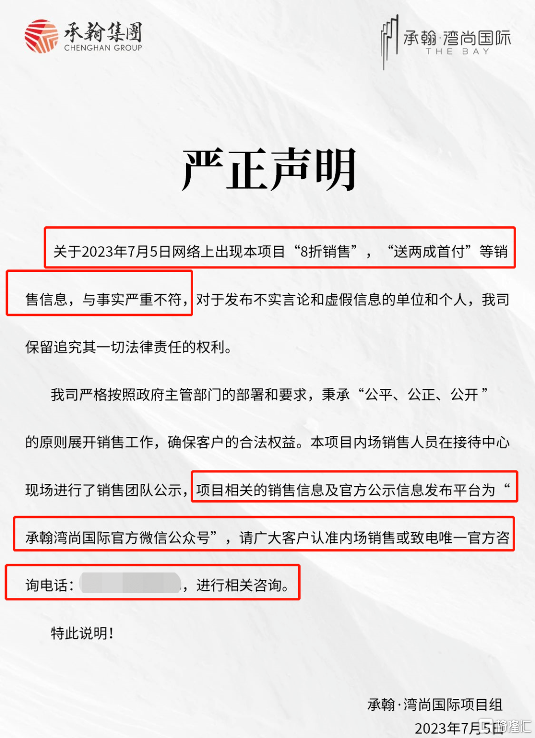 因为项目当晚就发布了声明表示“8折销售”,“送两成首付”的消息和事实并不符,关于项目优惠的信息,让大家认准官方渠道。