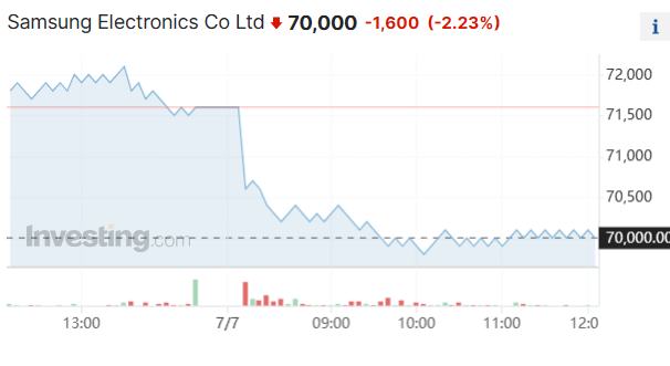 二季度令人失望的业绩一经披露,三星股价当日就跌超2%,创下两个多月来最大单日跌幅。