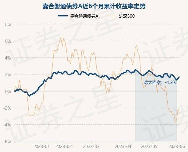 6月5日,嘉合磐通债券A最新单位净值为1.146元,累计净值为1.306元,较前一交易日上涨0.22%。历史数据显示该基金近1个月下跌0.59%,近3个月下跌0.28%,近6个月上涨1.72%,近1年上涨4.17%。该基金近6个月的累计收益率走势如下图: