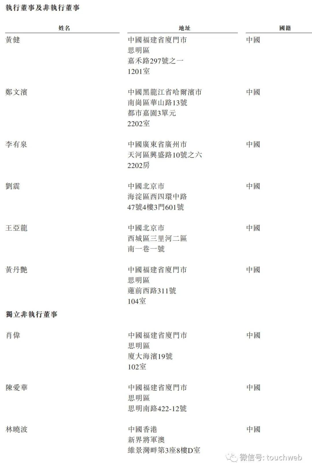 燕之屋董事分别为黄健、郑文滨、李有泉、刘震、王亚龙、黄丹艷;独立非执行董事分别为肖伟、陈爱华、林晓波。