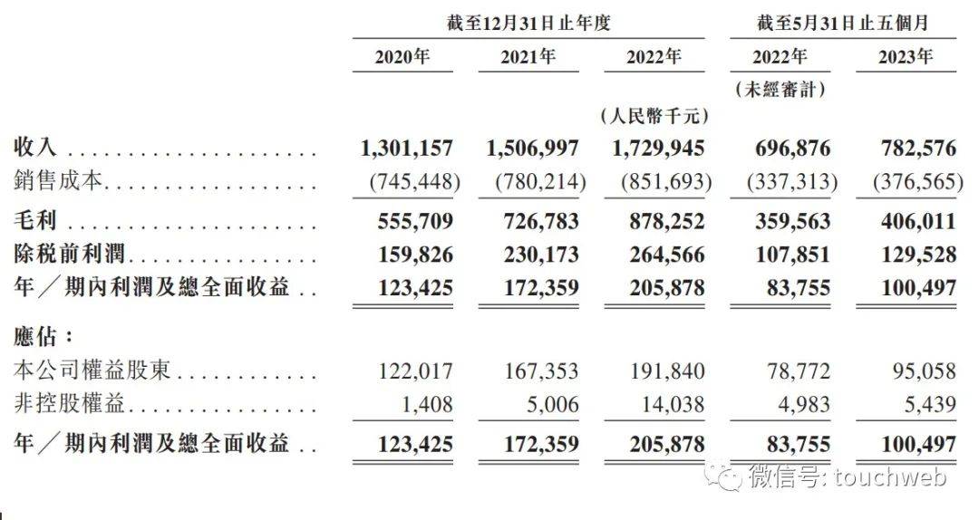 招股书显示,燕之屋2020年、2021年、2022年营收分别为13亿元、15亿元、17.3亿元;毛利分别为5.56亿元、7.27亿元、8.78亿元;燕之屋2020年、2021年、2022年年内利润分别为1.23亿元、1.72亿元、2.06亿元。