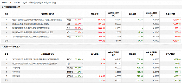 具体来看,机构买入216.08万元,卖出1330.66万元,合计净卖出1114.57万元。此外,中国中金财富证券有限公司上海黄浦区中山东二路证券营业部、国盛证券黄山洽阳路证券营业部分别买入2071.79万元、1514.62万元;东方财富证券拉萨金融城南环路证券营业部、申万宏源证券有限公司上海浦东新区靖海路证券营业部分别卖出507.09万元、482.53万元。