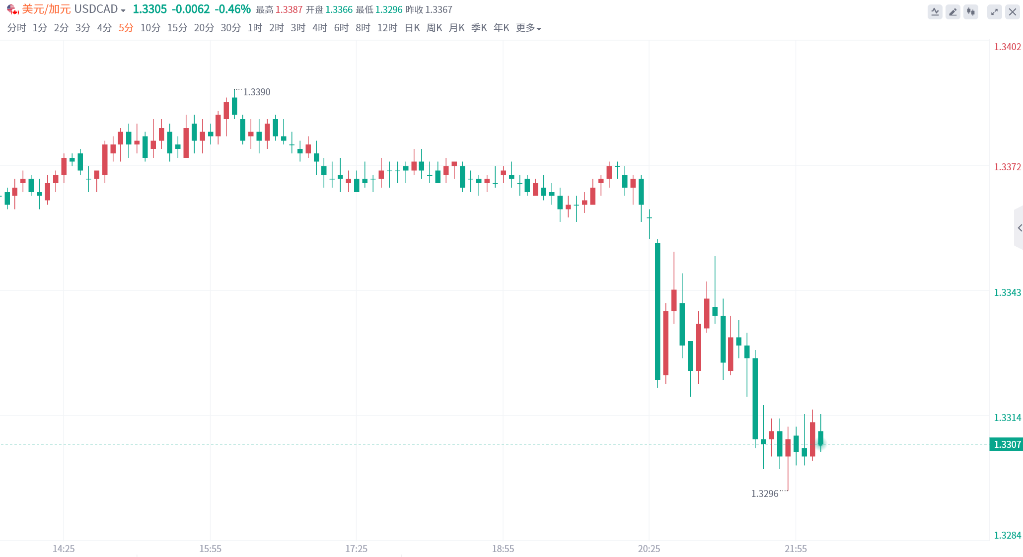 数据公布后,加元兑美元汇率一度升至1.3296的高点。同时公布的非农报告显示,美国6月份新增就业岗位低于预期。