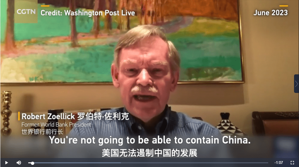 近日,世界银行前行长罗伯特·佐利克在接受《华盛顿邮报》采访中表示,冷战是一个非常草率的比喻。当下从实力的角度看,美国无法遏制中国发展。