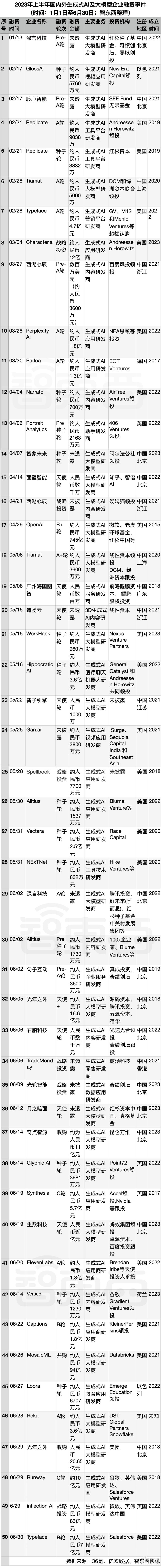 ▲2023年上半年国内外生成式AI及大模型企业融资事件