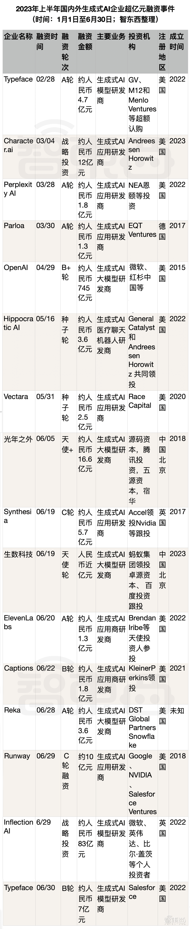 ▲2023年上半年国内外生成式AI企业超亿元融资事件