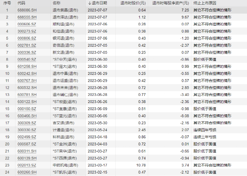 今年以来,已有24家上市公司告别A股,其中*ST蓝光、*ST中天等多家房企被终止上市。