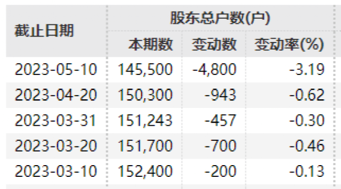 截至5月11日,该股股东户数为14.55万户。