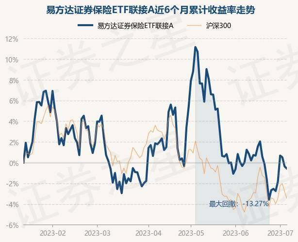 7月7日,易方达证券保险ETF联接A最新单位净值为0.8538元,累计净值为0.8538元,较前一交易日上涨0.35%。历史数据显示该基金近1个月下跌0.23%,近3个月下跌2.02%,近6个月下跌0.18%,近1年下跌0.13%。该基金近6个月的累计收益率走势如下图:
