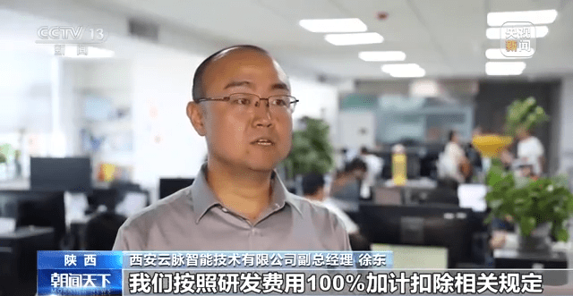 西安云脉智能技术有限公司副总经理 徐东:我们按照研发费用100%加计扣除相关规定,预计7月份,我们就可以申报享受加计扣除340万元,这及时为我们缓解了资金压力。