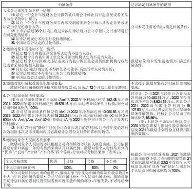 根据《激励计划(草案)》规定及公司2021年第3次临时股东大会授权,公司董事会认为2021年激励计划预留授予的第二类限制性股票的第一个归属期归属条件已部分成就,现就归属条件达成情况说明如下: