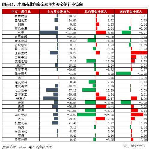 交易层面,本周交投情绪冲高回落,日均成交额环比下降9.3%至8859亿元。本周北上资金净流出49.76亿元,较上周流出趋势放缓。本周北上资金大幅加仓通信、电子、计算机、汽车,净流入均超10亿元,中美贸易摩擦缓和预期下相关板块受到青睐,北上重仓行业非银金融、电力设备被大幅减持。