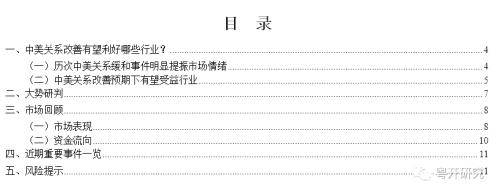 一、受益于中美贸易关系回暖预期的行业板块,包括受前期贸易摩擦影响较大且贸易规模占比较高的纺织服饰、汽车、交通运输、电子、机械设备、环保,可关注后续中美合作相关政策的落地。