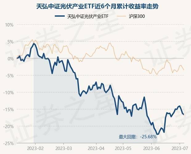 7月7日,天弘中证光伏产业ETF最新单位净值为1.001元,累计净值为1.001元,较前一交易日下跌1.68%。历史数据显示该基金近1个月上涨5.68%,近3个月下跌10.0%,近6个月下跌18.02%,近1年下跌32.4%。该基金近6个月的累计收益率走势如下图: