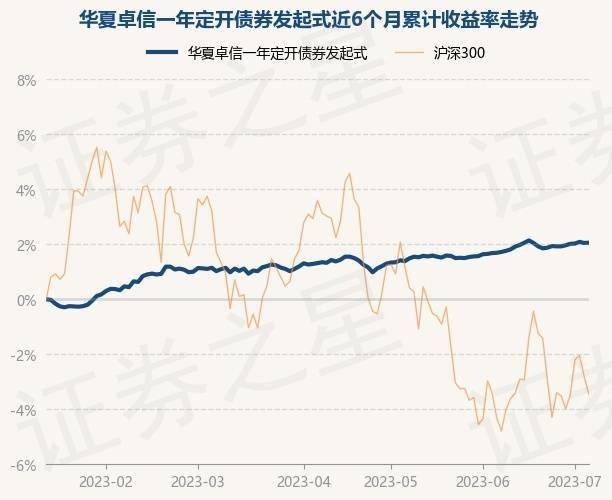 7月7日,华夏卓信一年定开债券发起式最新单位净值为1.0272元,累计净值为1.0272元,较前一交易日上涨0.02%。历史数据显示该基金近1个月上涨0.34%,近3个月上涨0.74%,近6个月上涨2.05%,近1年上涨2.38%。该基金近6个月的累计收益率走势如下图: