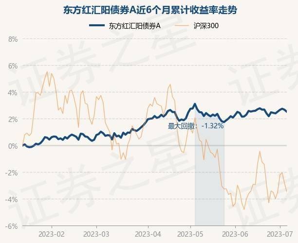 7月7日,东方红汇阳债券A最新单位净值为1.1019元,累计净值为1.3819元,较前一交易日下跌0.06%。历史数据显示该基金近1个月上涨0.31%,近3个月上涨0.24%,近6个月上涨2.5%,近1年上涨3.51%。该基金近6个月的累计收益率走势如下图: