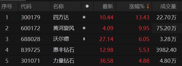 原标题:培育钻石板块震荡拉升 黄河旋风涨停