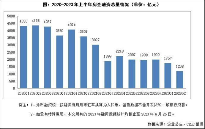 克而瑞数据显示,从80家典型房企的融资总量来看,2023年上半年80家典型房企的融资量为2965亿元,同比下降30%;其中2023年一季度及二季度的融资规模,环比及同比均呈现继续下滑的趋势。