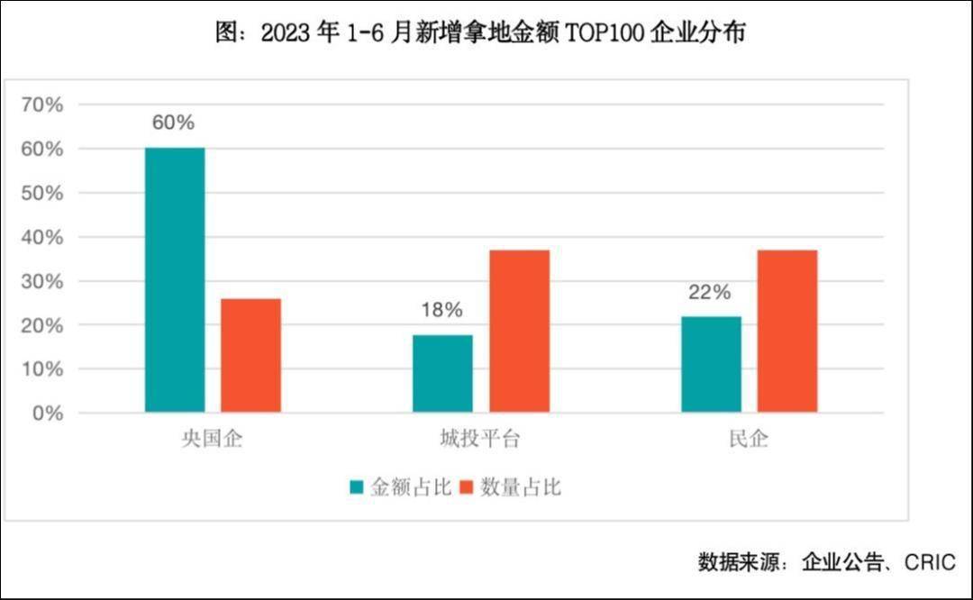 今年上半年,拿地主力仍为央国企,据克而瑞数据,上半年新增拿地金额TOP100企业中,央国企拿地金额占百强比重达到60%,占据绝对主力,城投平台以及民企拿地金额比重分别是18%和22%。值得注意的是,截止到今年5月,仍有近五成百强房企仍未投资,这一比例与去年同期相持平。这一数据也反映出当前能够拿地的房企也都是“老面孔”,新鲜血液并不多。