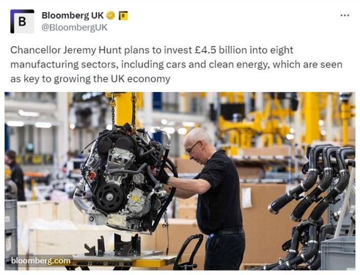 英国财政大臣亨特表示,整个制造业占英国出口总额的43%以上,雇用约260万人。这笔投资将支持英国处于世界前沿的制造业领域,促进英国经济发展,并且创造更多、更高薪的就业机会。