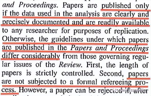 “数据必须仍然是可复现的”,但约翰逊说,“作者的声望也发挥了作用”,“这对于所有 AER 论文都是如此,而不仅仅是出现在‘会议记录’中的论文”
