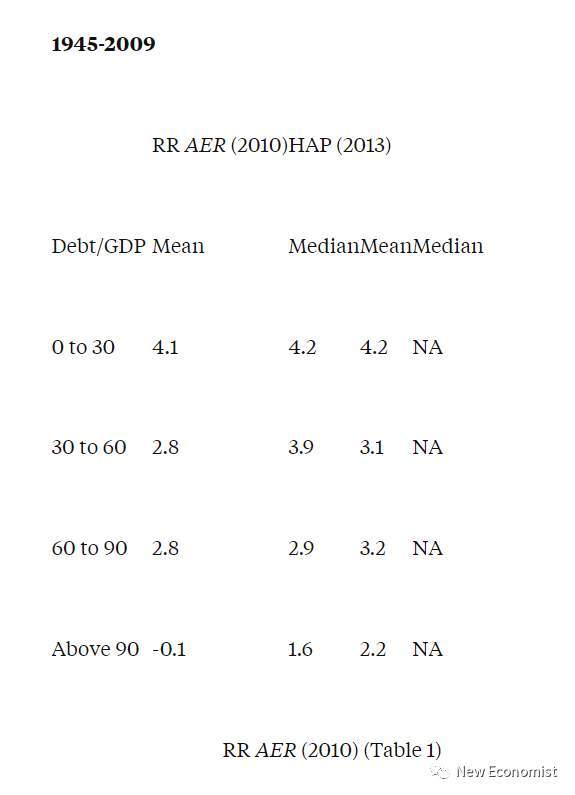HAP的结论是:“与‘RR’的观点相反,公共债务/GDP超过 90% 时的平均 GDP 增长率与公共债务/GDP较低时的平均 GDP 增长率并没有明显的区别。”
