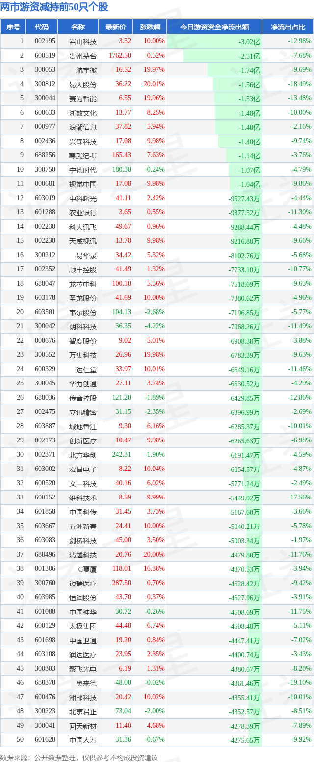 今天的市况大概如此,那么又有哪些公司遭游资抛弃呢?请看下表: