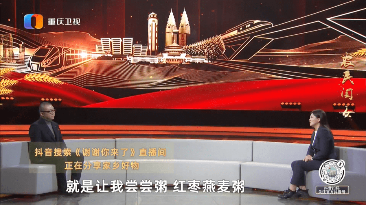 借助“短视频/直播+国货”的轻量化的传播方式,很多传统媒体也找到了更多新的机会点。重庆卫视民生节目《谢谢你来了》便是这样的例证,不仅在电视节目中以文字形式引导观众前往抖音平台搜索官方同名账号直播间,还在日常转载节目内容的同时,以短视频/直播挂载购物车的形式吸引观众购买同款家乡好物。这种内容和商品的深度连接,借助大小屏之间的联动,充分发挥了传统媒体的优势,助力国货推广销售。
